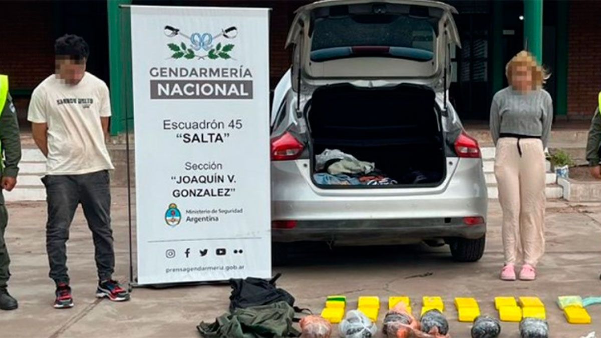 Ante esta situación, los efectivos iniciaron una persecución controlada que culminó en la localidad de Olleros, donde lograron interceptar el vehículo en cuestión. Durante la requisa del automóvil, los agentes descubrieron la presencia de dos mochilas en el maletero. Ante la presencia de testigos, procedieron a abrirlas, revelando 16 paquetes rectangulares que contenían un total de 15 kilos 860 gramos de cocaína y 5 kilos 949 gramos de marihuana.
