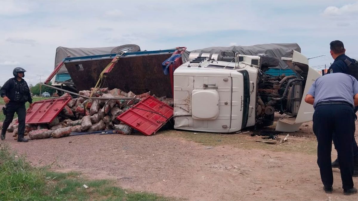 El incidente se originó cuando reventó un neumático del camión que venía desde la provincia de Catamarca. Tras el accidente, toda la carga terminó en el suelo.