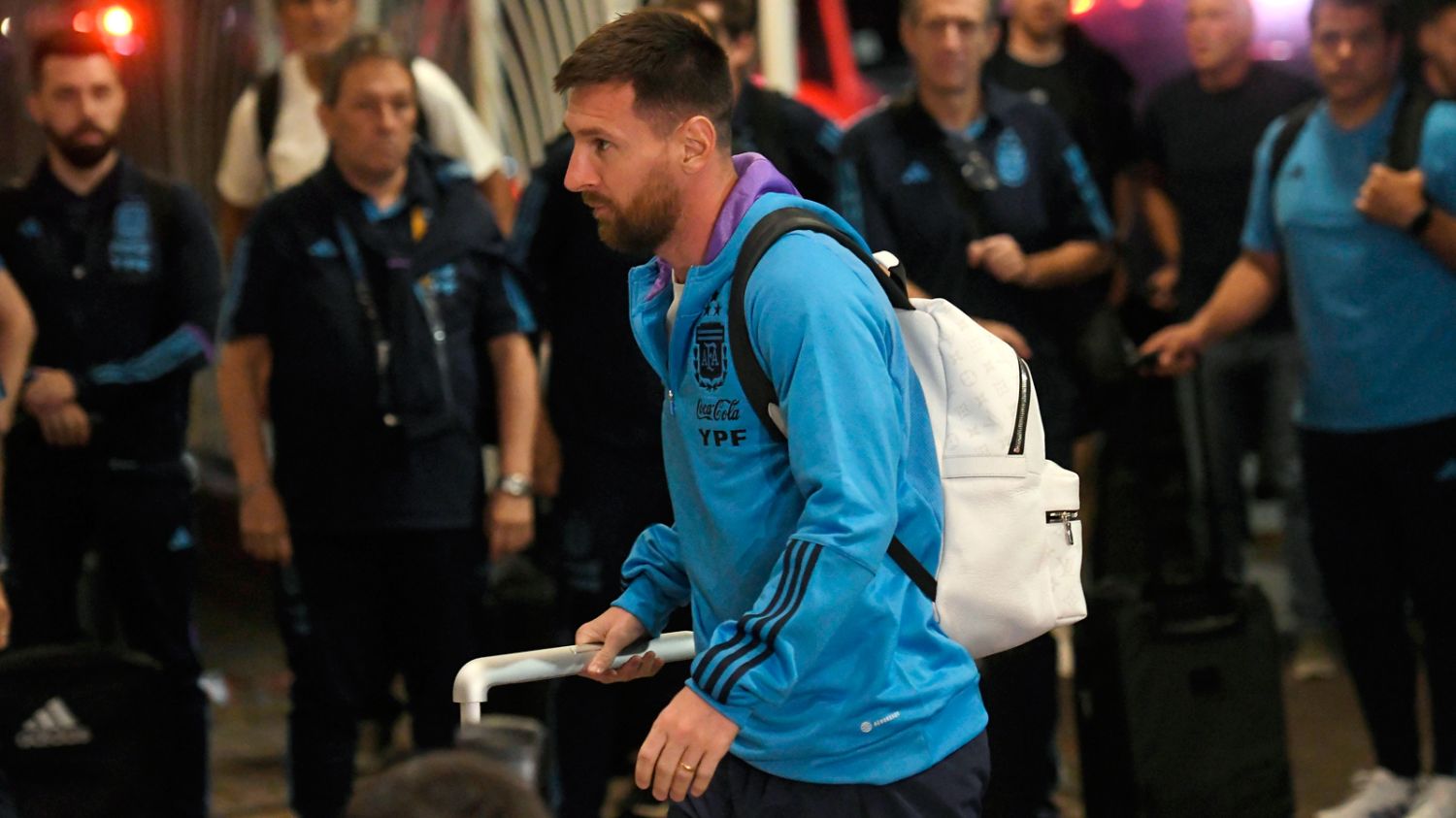 La Selección Argentina llegó, alrededor de las 22, al hotel que constituirá por unas pocas horas su alojamiento en Río de Janeiro, y allí fue recibido por unos 200 simpatizantes ataviados con camisetas argentinas, algunos paraguas para protegerse de la lluvia intermitente que abarcó toda la jornada carioca, y ejecutando cánticos referidos a la obtención del pasado Mundial de Qatar.