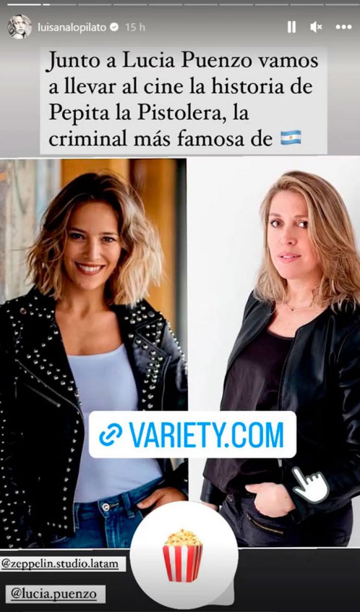 “Junto a Lucía Ponzo vamos a llevar al cine la historia de Pepita la Pistolera. Sí, la criminal más famosa de Argentina. ¿Cónocen su historia?”, expresó Lu a través de sus stories, antes de revelar que se probará en un nuevo rol.