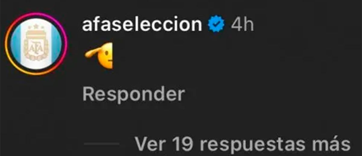 Lionel no es de utilizar mucho su Instagram; este posteo fue apenas el séptimo en su perfil. En todos los anteriores, entre ellos algunos dedicados al Mundial y la Copa América obtenidos, nunca hubo un comentario de @afaselección, la cuenta oficial de la Selección Argentina. En este sí. Y no fue cualquier mensaje, sino apenas un solo emoji: el de una cara realizando un saludo militar, con la mano firme en su frente en señal de respeto. ¿Fue una despedida?