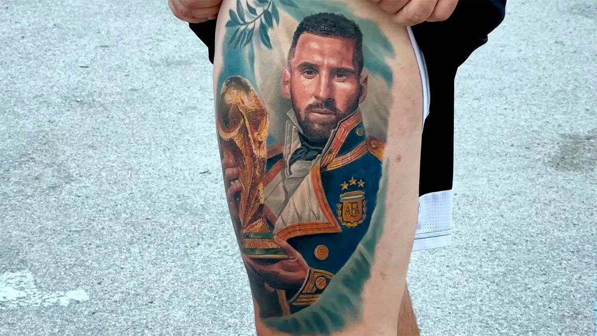 Fanático del fútbol y tatuador desde muy joven, César “Yeyo” Molina es famoso por sus diseños realistas. Grabó en la piel de un argentino a Messi caracterizado como San Martín.