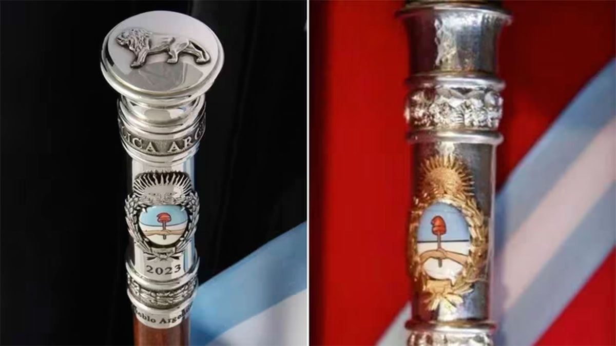 Al mismo tiempo, Adrián Pallarols -hijo menor de Juan Carlos- confeccionó un modelo alternativo de bastón de mando para Javier Milei, con la particular característica de un león de plata que luce en la parte superior de la pieza.