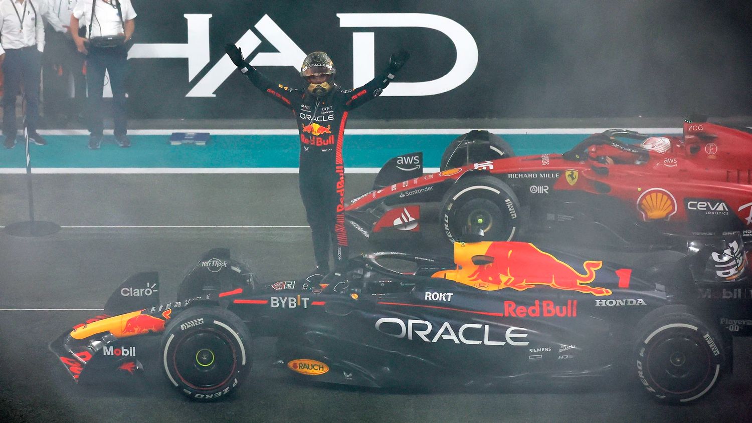 El piloto de Países Bajos se impuso de punta a punta y cruzó la meta del circuito Yas Marina, escoltado por el monegasco Charles Leclerc (Ferrari) y el británico George Russell, quien aseguró a Mercedes el subcampeonato de la Copa de Constructores junto a su compatriota Lewis Hamilton, hoy noveno.