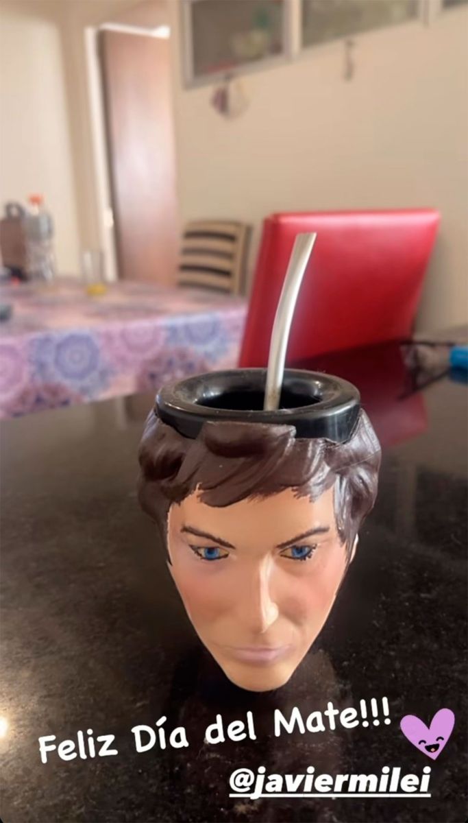 La actriz y pareja oficial de Milei sorprendió a sus seguidores con una foto muy especial por el Día del Mate: el suyo tiene la cara del presidente electo.
