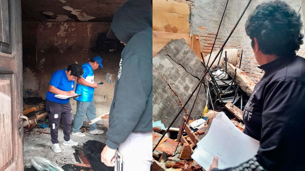 Personal de Defensa Defensa Civil de la provincia brindó asistencia y realizó un relevamiento, en un domicilio incendiado y en otro que sufrió un derrumbe.