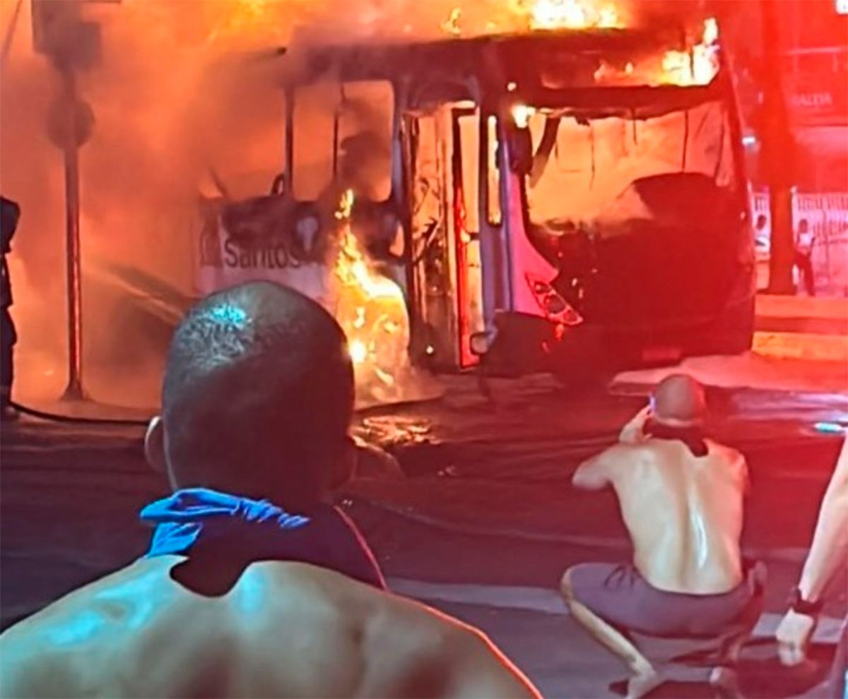 Los hinchas de Santos, en Brasil, provocaron destrozos e incendiaron dos micros y autos de futbolistas, luego del histórico descenso del equipo a la segunda división del fútbol brasileño.