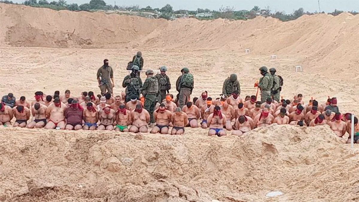 Las imágenes difundidas en redes sociales muestran a decenas de presuntos combatientes sentados en el piso, en filas y semidesnudos, muchos con las manos en la cabeza y mirando al piso.