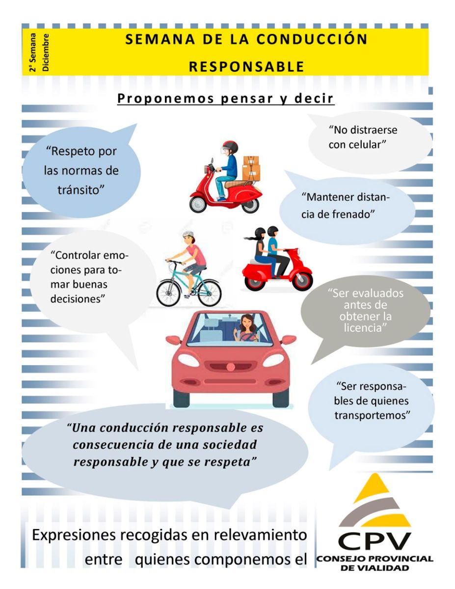 En el marco del calendario vial oficial de nuestro país, diciembre nos propone la Semana de la Conducción Responsable, para promover el pensar y revisar nuestras conductas a la hora de conducir nuestros vehículos.