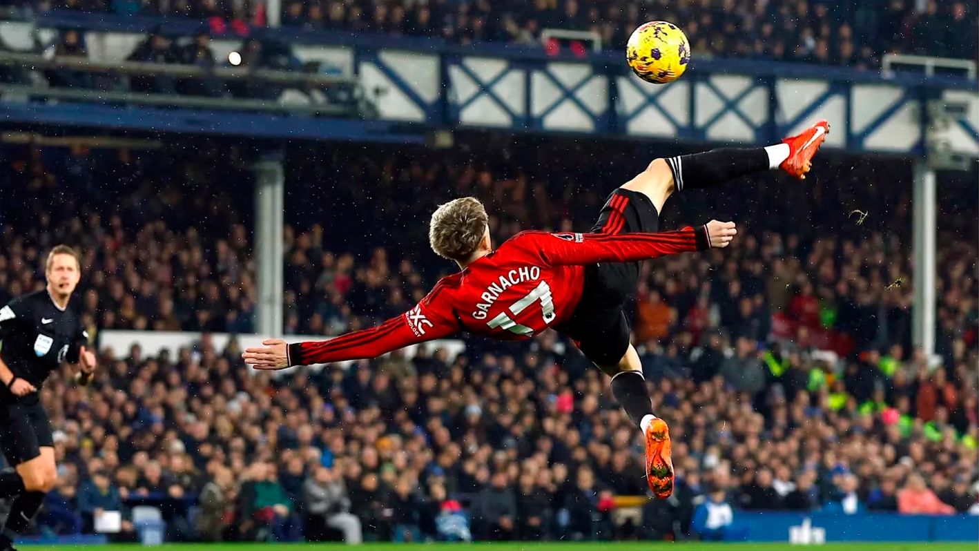 El delantero argentino Alejandro Garnacho recibió hoy el premio al mejor gol de noviembre en la Premier League por su anotación de chilena frente a Everton, en la victoria por 3 a 0.