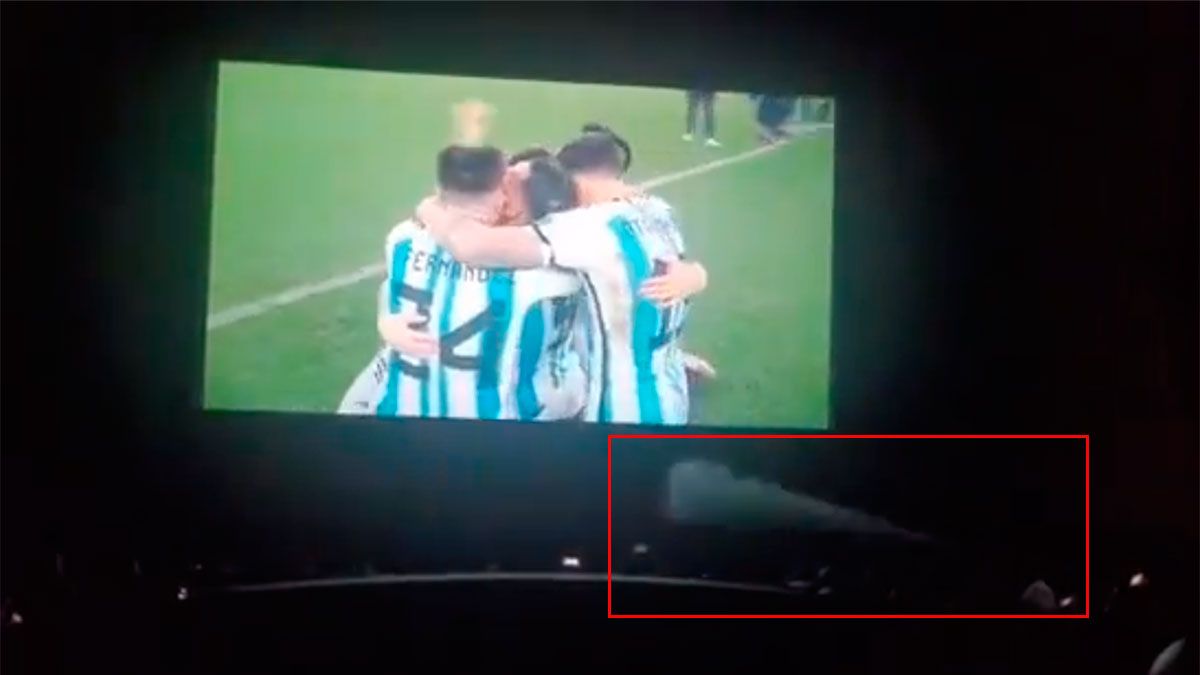 En el video, que se viralizó en las redes sociales, se escucha el festejo de gol de los presentes y de la nada aparece una nube de humo blanco. Ante esta situación, los espectadores que comenzaron a levantarse de sus lugares por este motivo. Mientras tanto, la película continuó y le sumó un condimento a la insólita escena.