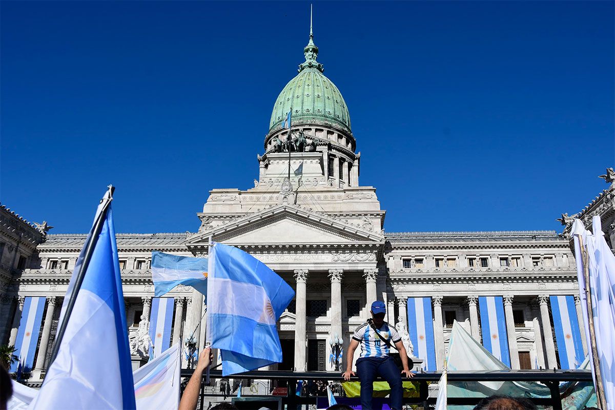 Ciudadanos procedentes de distintos puntos del país se ubicaron en las inmediaciones del Parlamento, en la Plaza de los Dos Congresos de la ciudad de Buenos Aires, en medio del gran operativo de seguridad.
