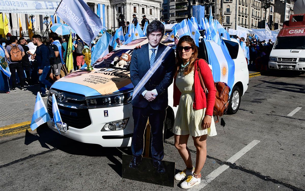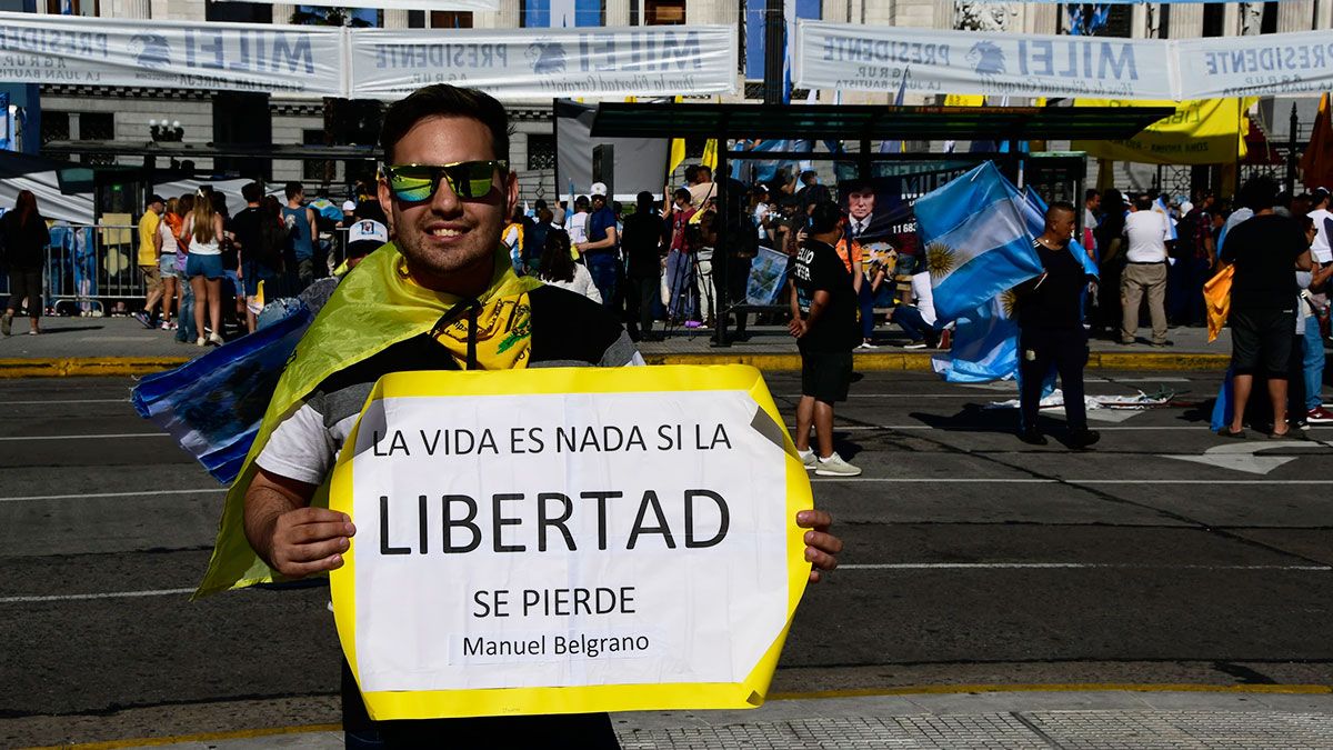 "Viva la libertad, carajo", era el grito que más se escuchaba en la plaza por parte de los seguidores de Milei.