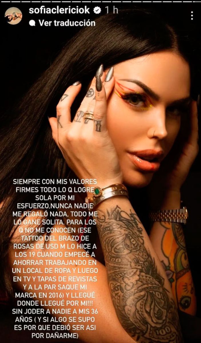 Sin hacer mención directa a Martín Insaurralde, Sofía Clerici también habló de las personas que intentaron perjudicarla a lo largo de su carrera y se justificó por sacar a la luz información que no debía ser revelada. “¡Llegué a donde llegué por mí! Sin joder a nadie a mis 36 años. Y si algo se supo es porque debió ser así por dañarme”, sentenció.
