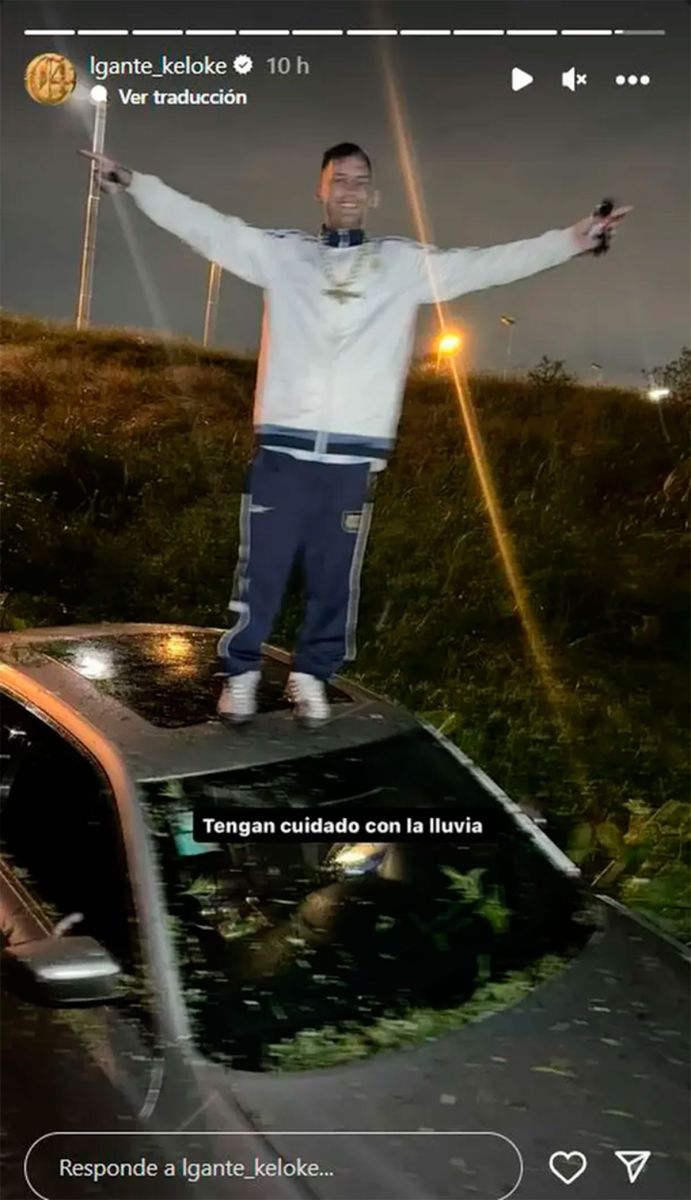 En plena tormenta, durante la madrugada de este jueves, L-Gante sufrió un accidente con su coche. Fue el mismo cantante el que mostró la situación en un par de posteos que compartió en sus redes sociales. A través de historias de Instagram, el referente de la Cumbia 420 registró instantáneas de la lastimadura que le quedó en la frente luego del incidente vial que, aparentemente, habría sufrido sin intervención de terceros. El músico se sacó una foto parado arriba de su auto en el lugar donde se despistó. Al parecer, la tormenta le jugó una mala pasada al vehículo, pero por suerte para L-Gante, la situación no pasó a mayores. “Tengan cuidado con la lluvia”, escribió en la historia, mientras posaba para la cámara con los brazos abiertos. El músico se subió al techo del auto accidentado, mientras sonreía para la cámara a pesar del mal trago que había vivido minutos antes.