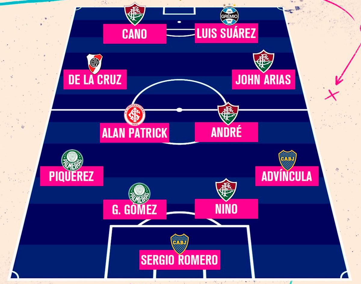 El 11 ideal de El País es el siguiente: Romero; Advíncula, Nino (Fluminense de Brasil), el paraguayo Gustavo Gómez (Palmeiras de Brasil) y el uruguayo Joaquín Piquerez (Palmeiras); el colombiano Jhon Arias (Fluminense), los brasileños André (Fluminense) y Alan Patrick (Inter de Brasil) y De La Cruz (River); el uruguayo Luis Suárez (Gremio de Brasil) y Cano.