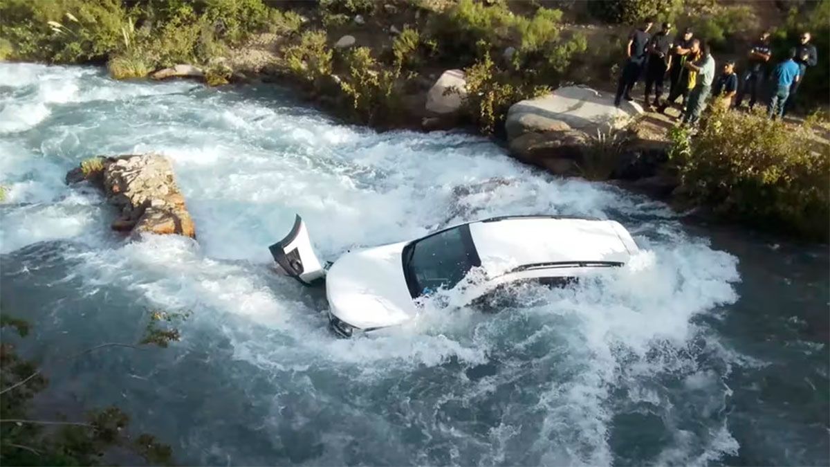 La policía fue alertada del trágico accidente poco después de las 17, a través de un llamado al 911. Al arribar al lugar, vieron al auto en medio de la correntada.
