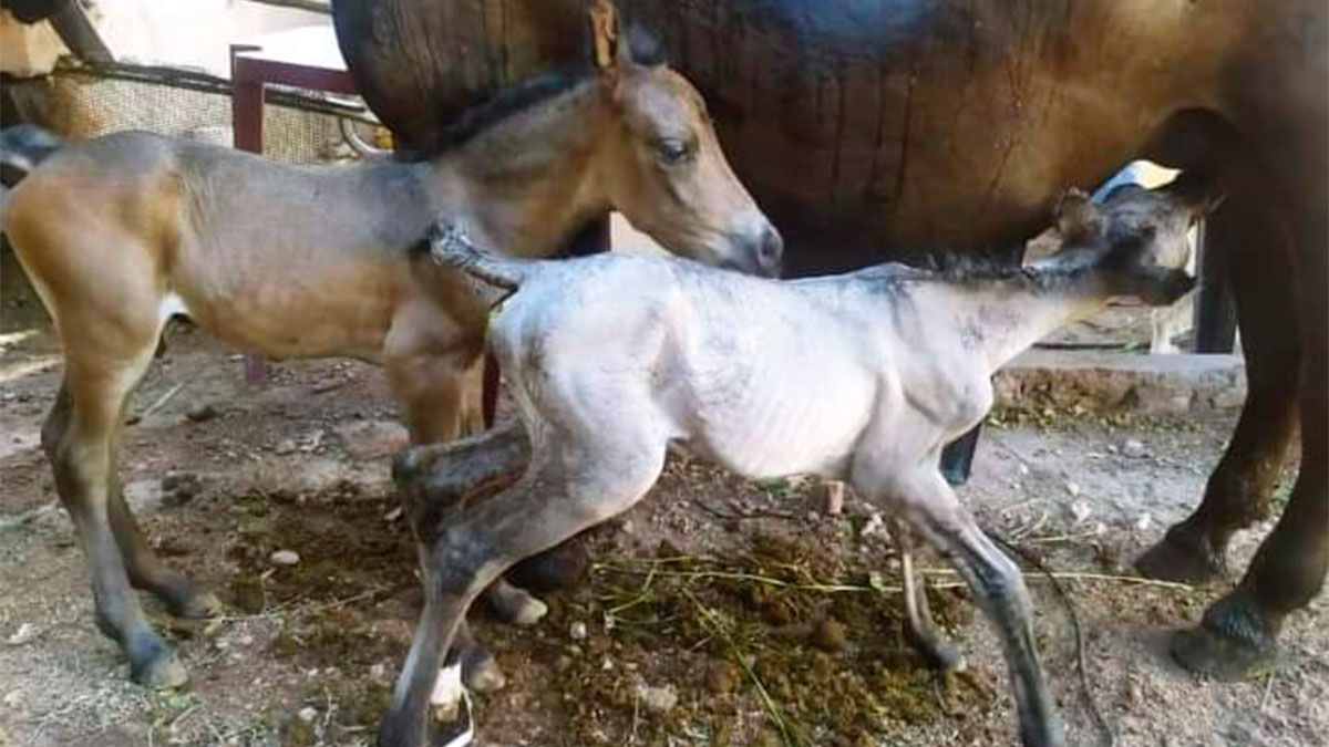 Desafíando las leyes de la naturaleza, una yegua dio luz a dos potrillos gemelos, que ya caminan por los valles.