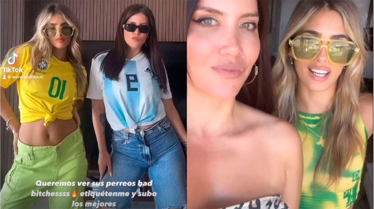 Mientras que la ex Gran Hermano llevaba una camiseta de la Selección brasileña, Wanda hizo lo propio con una de la Selección nacional, y sincronizadas, realizaron una coreografía que luego fue difundida a través de TikTok. “Queremos ver sus perreos bad bitches, etiquétenme y subo los mejores. ¿Podrán?”, fue el mensaje al pie de la publicación.