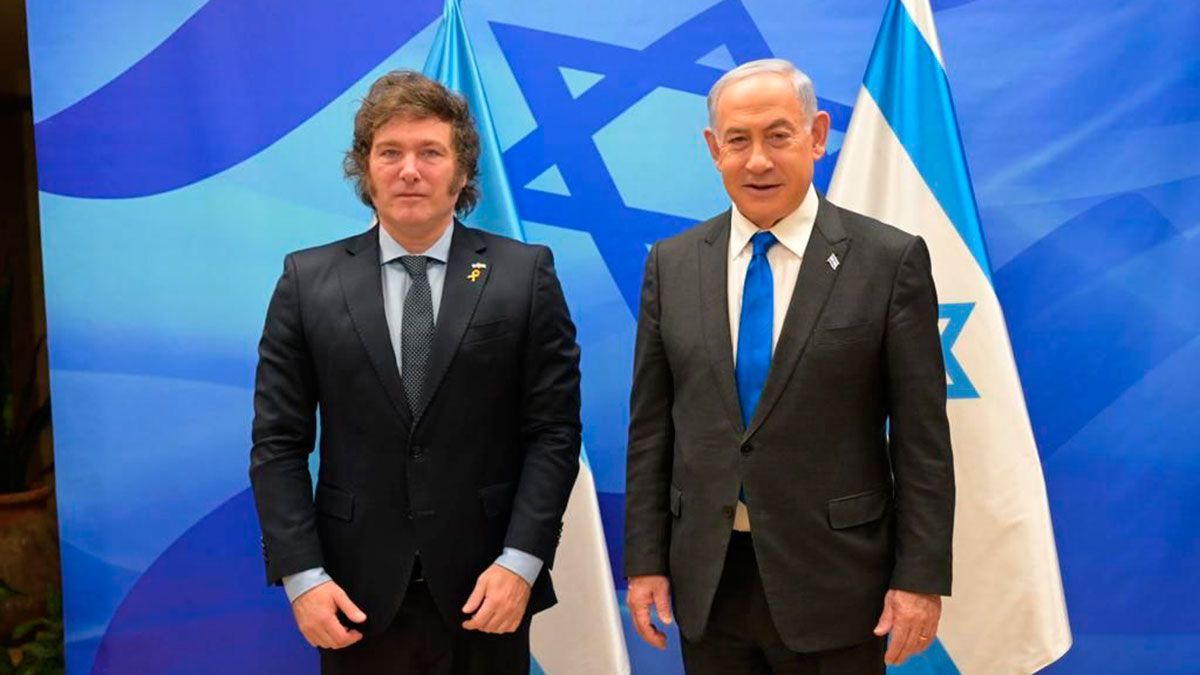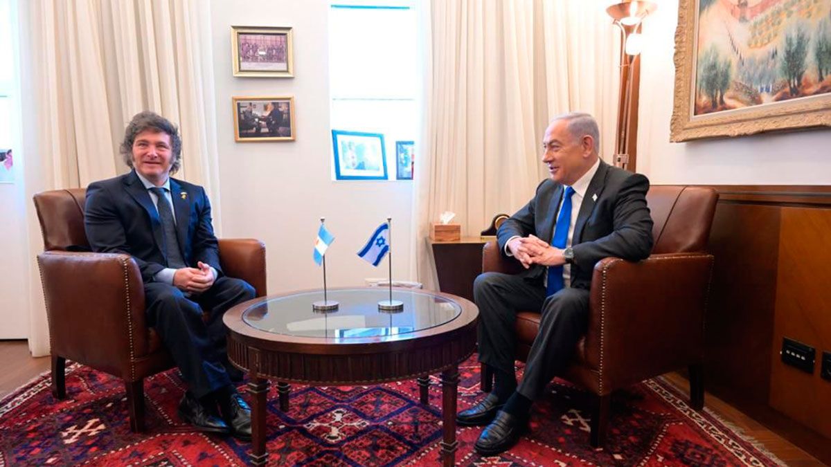 El presidente Javier Milei fue recibido hoy por el primer ministro de Israel, Benjamin Netanyahu, quien le agradeció su decisión de declarar al movimiento palestino Hamas como organización terrorista, así como también su "firme apoyo" al Estado hebreo y su plan de trasladar la embajada argentina a Jerusalén.
