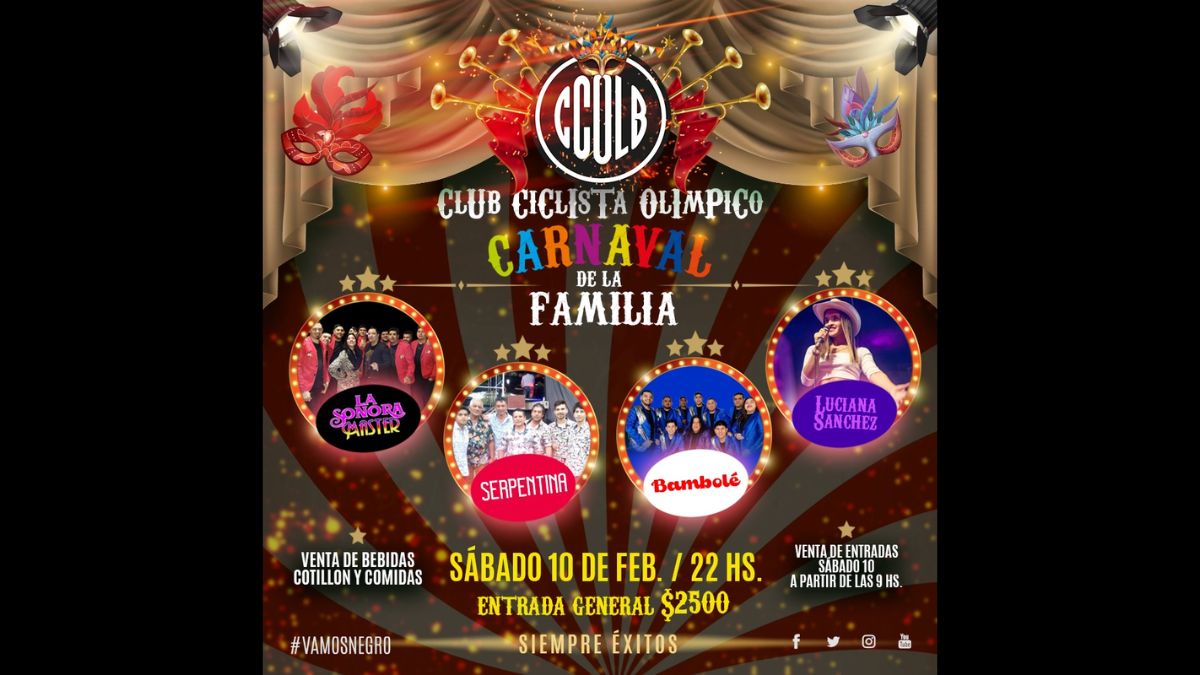 Como todos los años, la Comisión Directiva y la Subcomisión de Eventos del Club Ciclista Olímpico, organizan el “Carnaval de la Familia”. Este evento, reúne a miles de niños y adultos en un clima de fiesta para compartir un encuentro lleno de diversión.