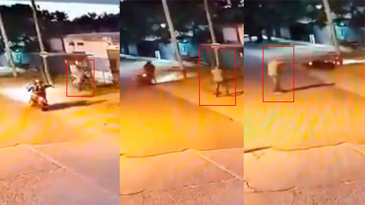 La imagen muestra el momento en el que la moto -con dos personas a bordo- cruzó la calle, llegó hasta la parada de colectivos y cuando estaba a unos metros de la víctima, el delincuente que iba detrás extendió su mano como si estuviese empuñando un arma.