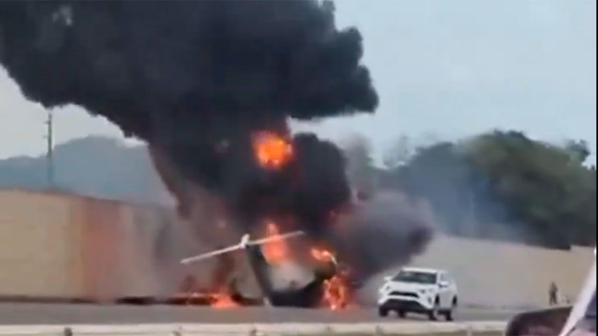 Avión privado se estrelló contra un auto e incendió durante un aterrizaje de emergencia