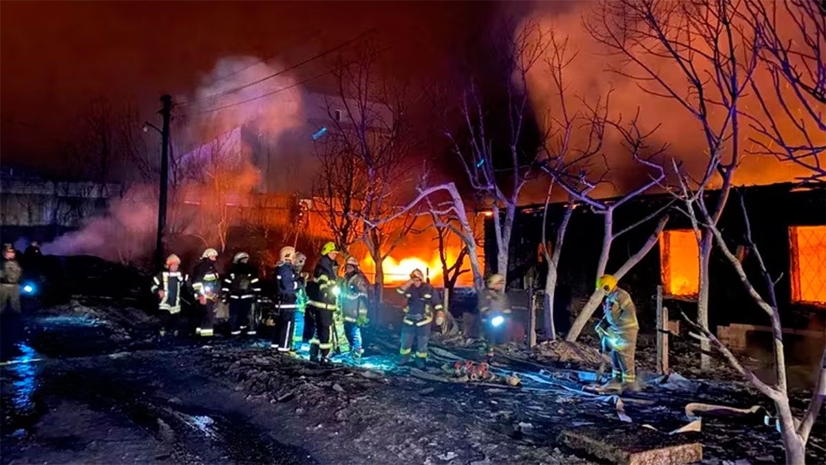 El jefe policial de la ciudad, Volodimir Timoshko, indicó que las llamas todavía no se habían extinguido a las 06:00, hora local.