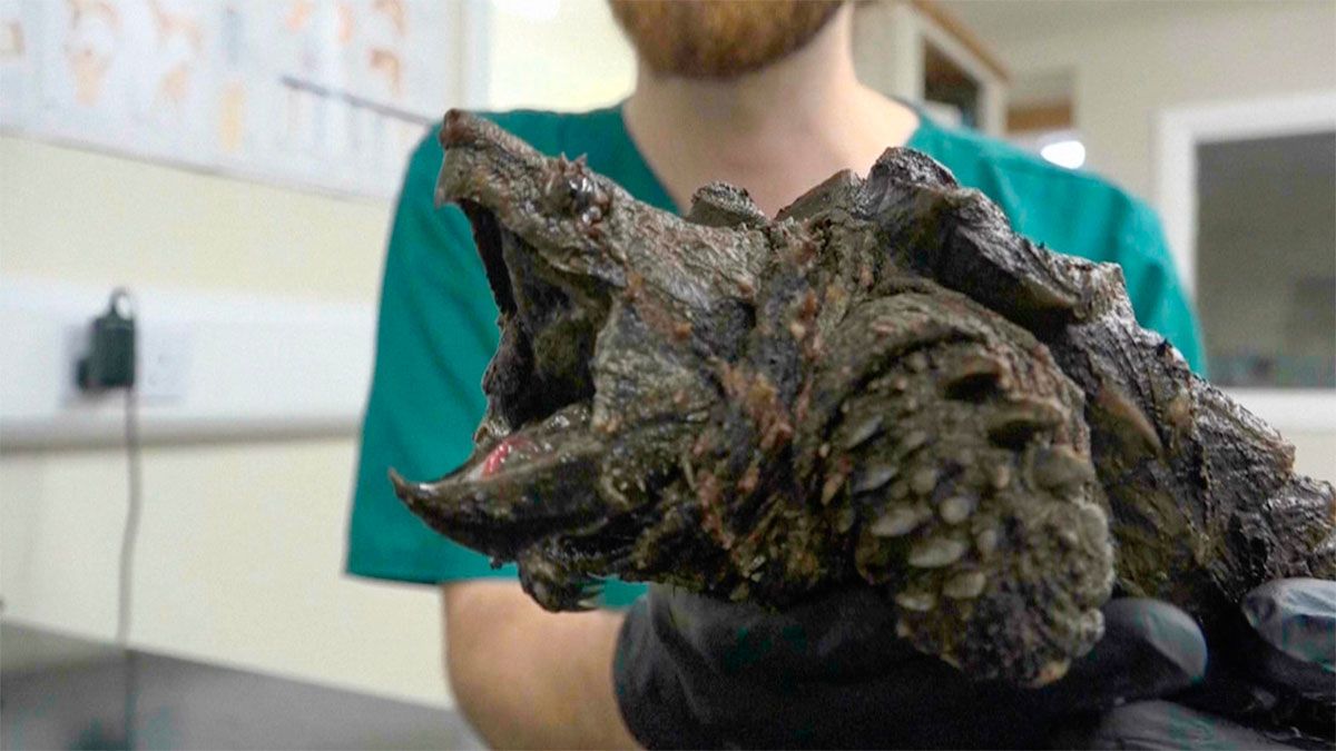 Las tortugas caimán ('Macrochelys temminckii') son nativas de los hábitats de agua dulce del sureste de EE.UU. y generalmente se encuentran en pantanos y ríos de Florida, por lo que fue raro hallar a este animal a miles de kilómetros de distancia. Estos reptiles tienen caparazones en forma de armadura que les da una apariencia prehistórica, además de una mandíbula lo suficientemente poderosa como para atravesar huesos.