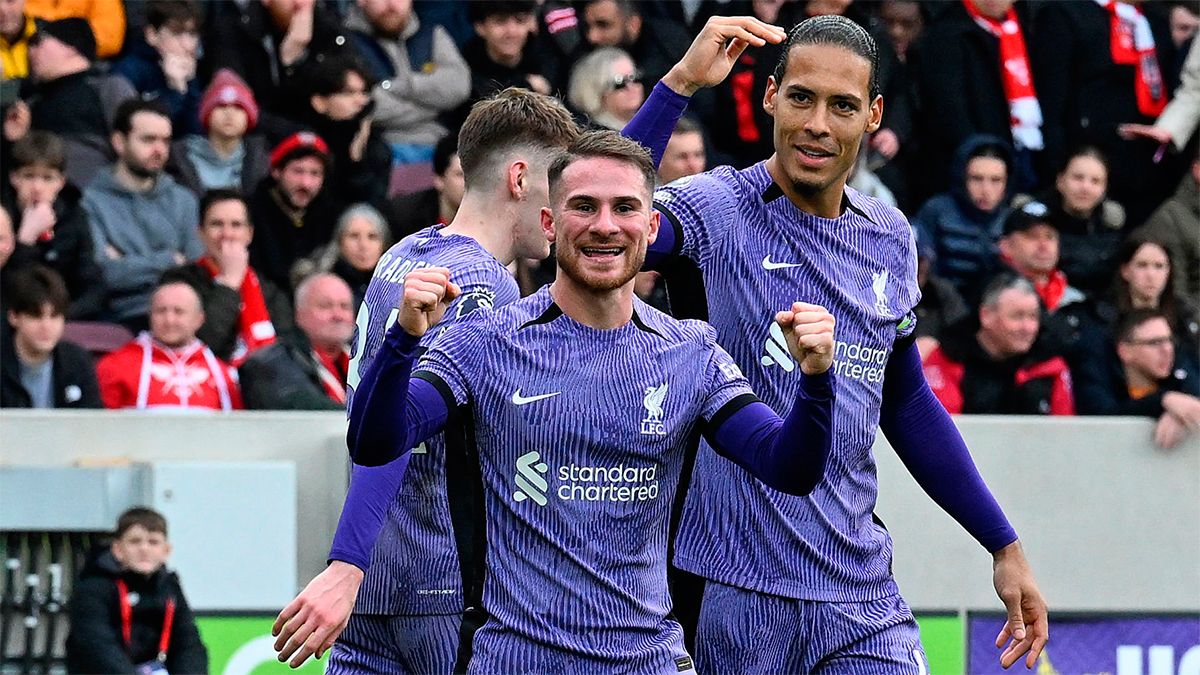 Alexis Mac Allister marcó hoy en la victoria del líder, Liverpool, sobre Brentford por 4 a 1 como visitante, en el comienzo de la 25ta. fecha de la Premier League inglesa.