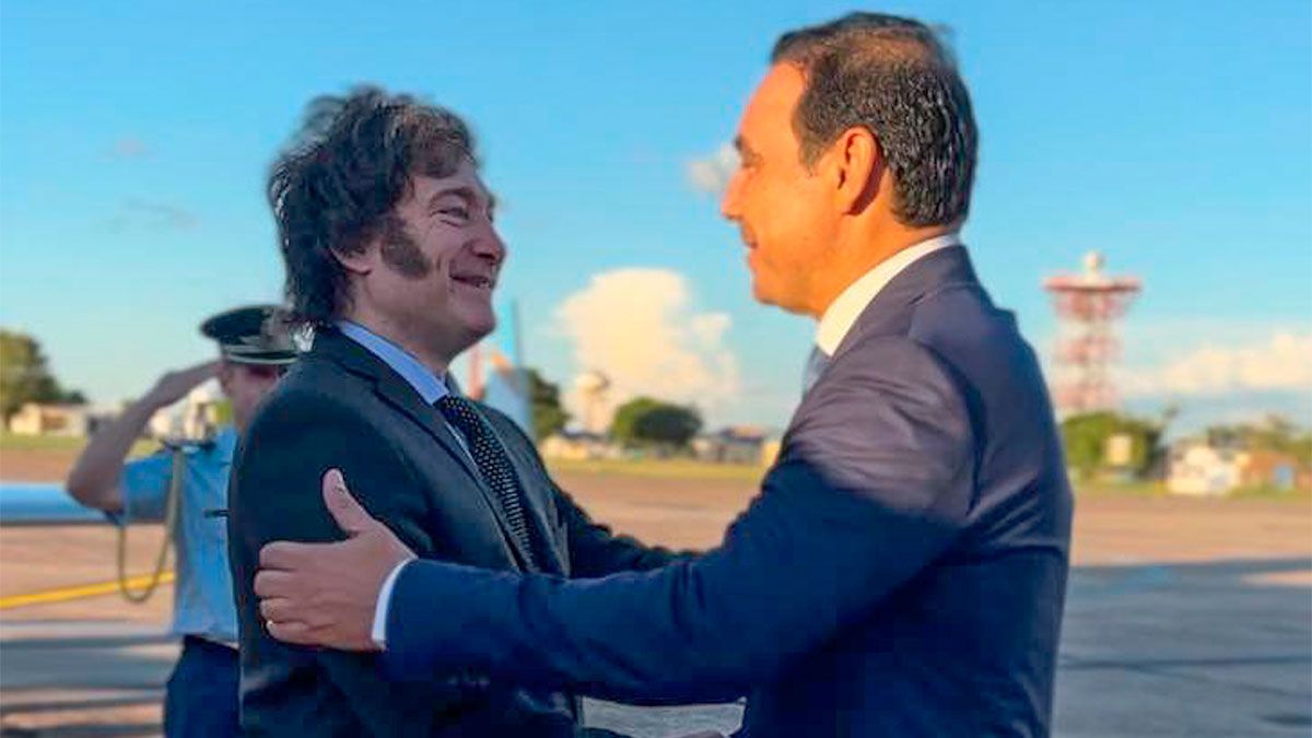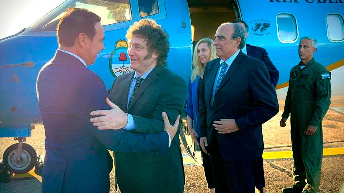 Acompañado por el ministro del Interior, Guillermo Francos, Milei fue recibido por el gobernador local, el radical Gustavo Valdés, uno de los mandatarios provinciales con mejor relación con el jefe de Estado.