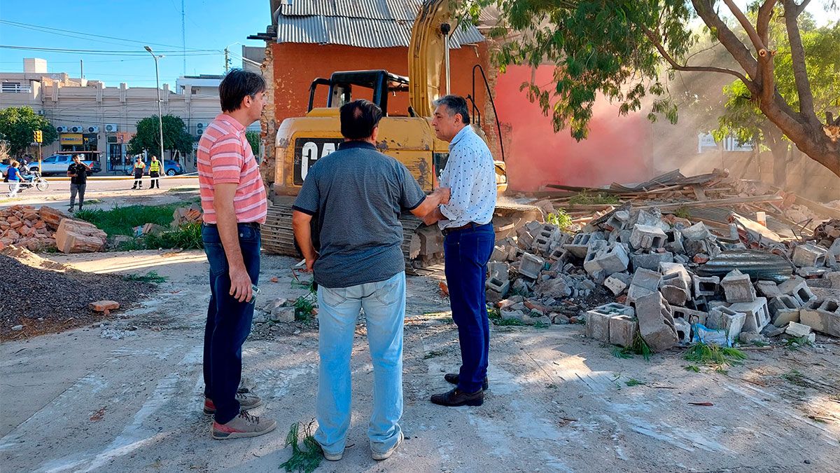 El intendente de la ciudad de La Banda, Roger Nediani junto con el Secretario de Obras Públicas, Cristian Alzamora y el subsecretario, Daniel Olmos visitaron el avance de un proyecto que incluye la demolición de una antigua construcción donde se creara un gran espacio verde que estará ubicado en la Av. San Martin y Alem.