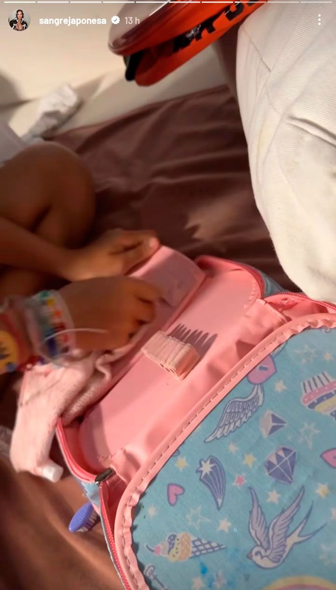 “Está limpiando su cartuchera del año pasado”, dijo la ex Casi Ángeles mientras grababa a la nena que tuvo con Nicolás Cabré. En la filmación, se la puede ver con un trapito sacando las manchas que había en el interior.