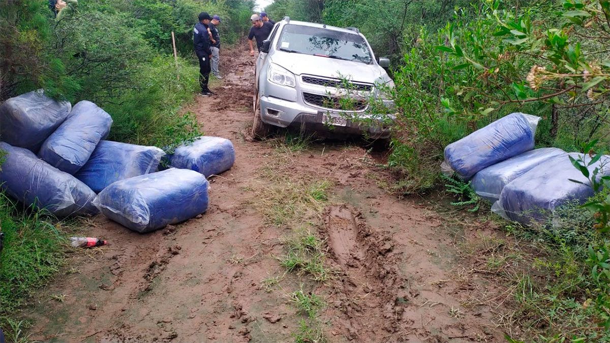 El rodado mayor quedó empantanado en un tramo donde había quedado agua de lluvia acumulada y sus ocupantes -dos hombres y una mujer- ya no se encontraban en el lugar cuando los uniformados llegaron. Los sospechosos habían huido en dirección al monte.