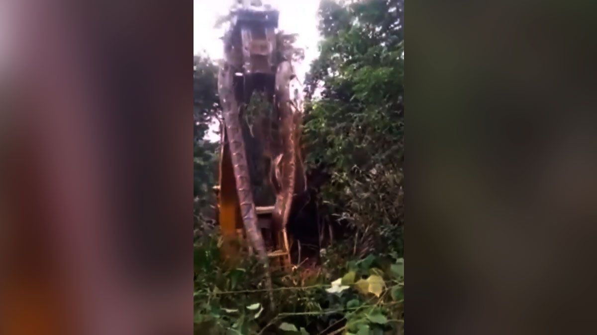 Las imágenes muestran cómo el ofidio estaba aferrada a una retroexcavadora.