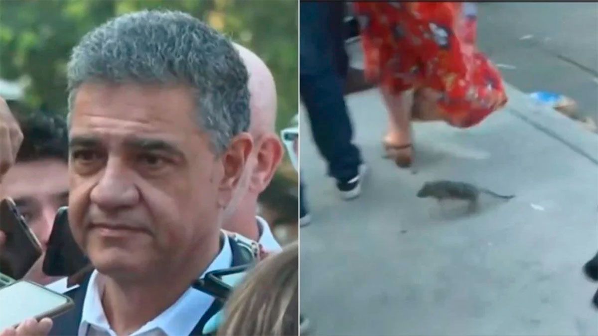 El jefe de Gobierno porteño, Jorge Macri, fue protagonista hoy de un insólito episodio. Cuando explicaba ante los medios de comunicación el operativo desalojo de una feria ilegal en el Barrio 31 de Retiro, una rata apareció en medio del grupo de periodistas, lo que generó momentos de tensión y gritos. Finalmente, el roedor terminó siendo devorado por dos perros.