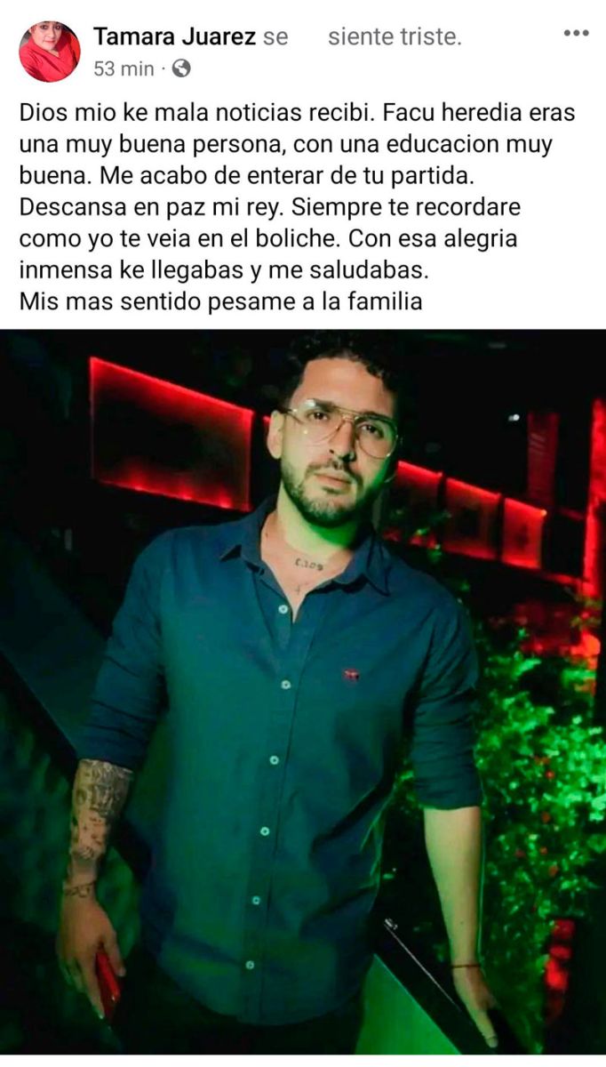 Según informaron las fuentes consultadas por este medio, el joven era muy querido en distintos ambientes. Trabajaba en relaciones públicas en locales bailables. “Con tu sonrisa se te va a recordar siempre, Facu”, escribió uno de sus amigos en medio de la congoja.