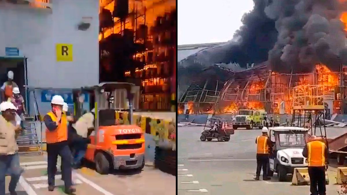 En la grabación se nota cuando los trabajadores corren para protegerse de las llamas.