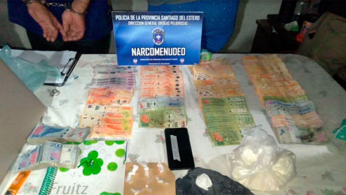 Allí, por disposición de la Fiscal Dr. Dra. Natalia Lorena Simoes fiscal de circunscripción Frías en concordancia con S.S Juez de Control y Garantías Frías Dr. Guillermo Paradel, se detuvo a cuatro personas dos mujeres, dos hombres y se secuestraron 20 envoltorios de nylon con cocaína en su interior, además de dos balanza y la suma de $631.270 y una notebook.
