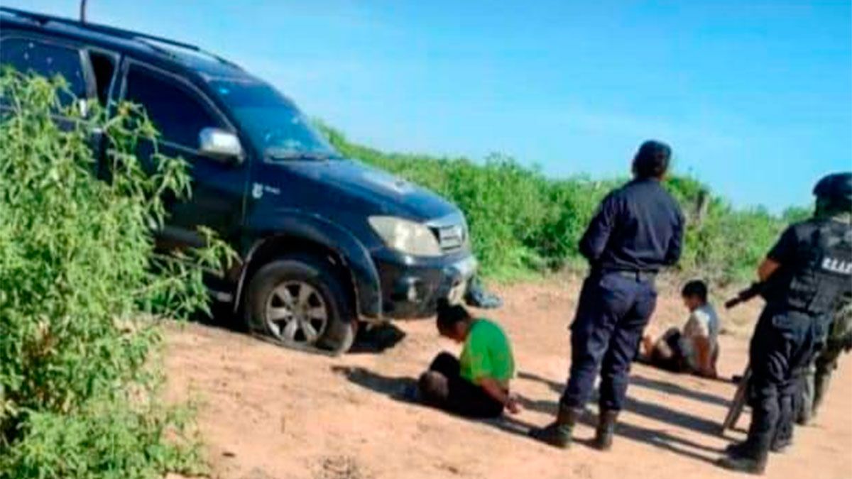 Alumnos de una escuela de la zona habían dado cuenta del vehículo sospechoso, de inmediato los efectivos se trasladaron al lugar y descubrieron una camioneta Toyota Hilux color negra con el motor en marcha y los parabrisas levantados, con ocupantes en su interior.