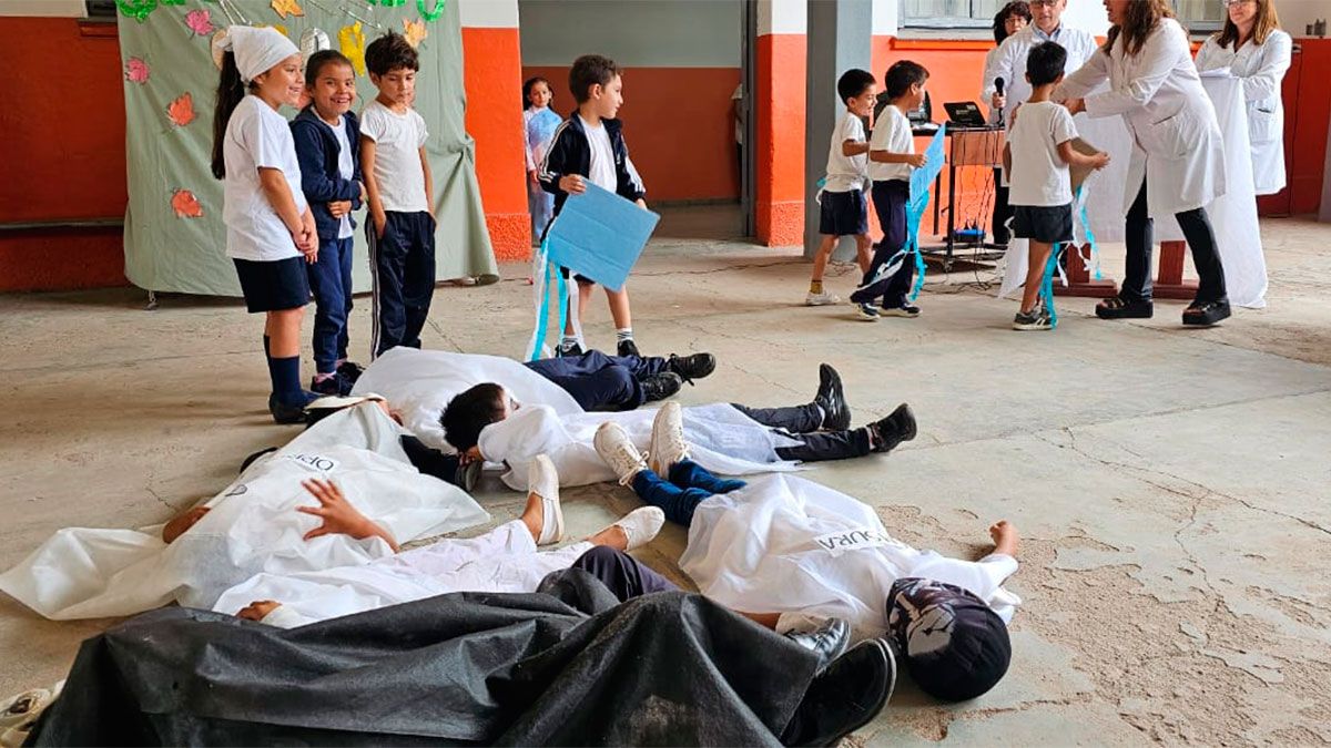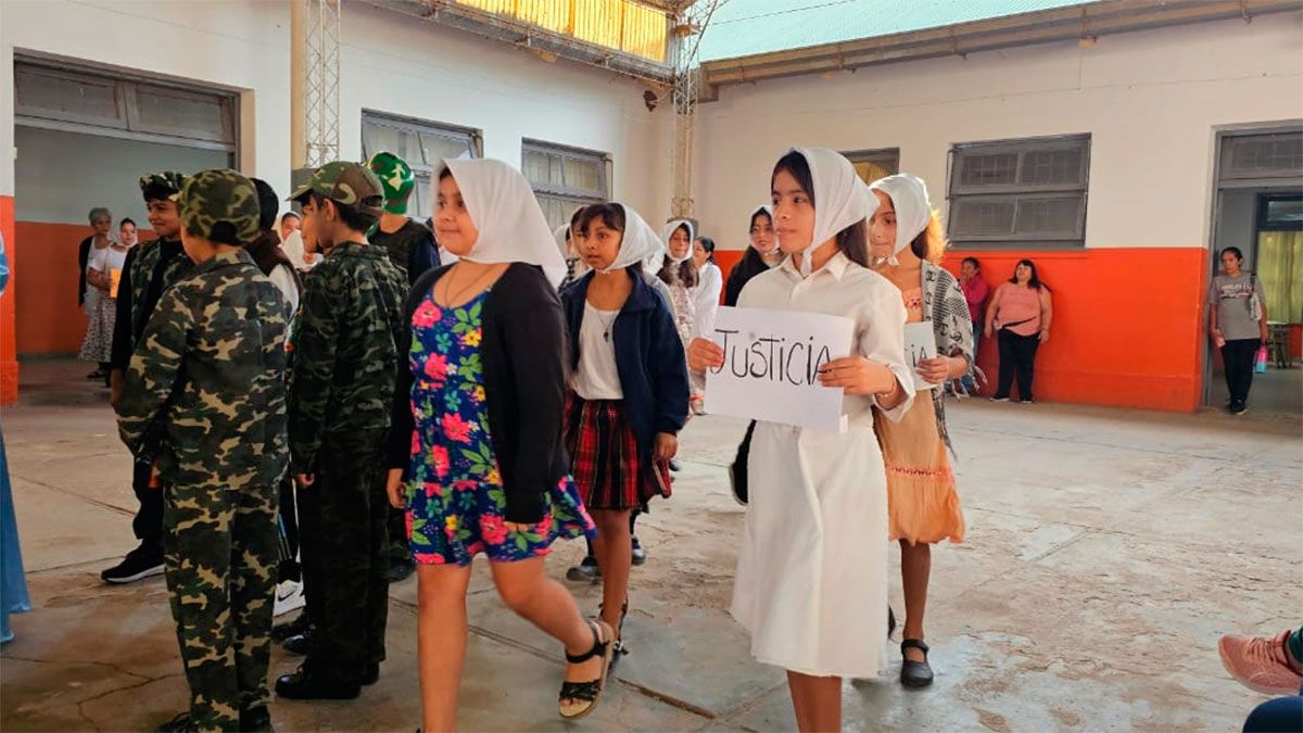 Los alumnos realizaron representaciones artísticas en el patio escolar, reflejando los tiempos de las paginas más oscuras de la historia de nuestro país.