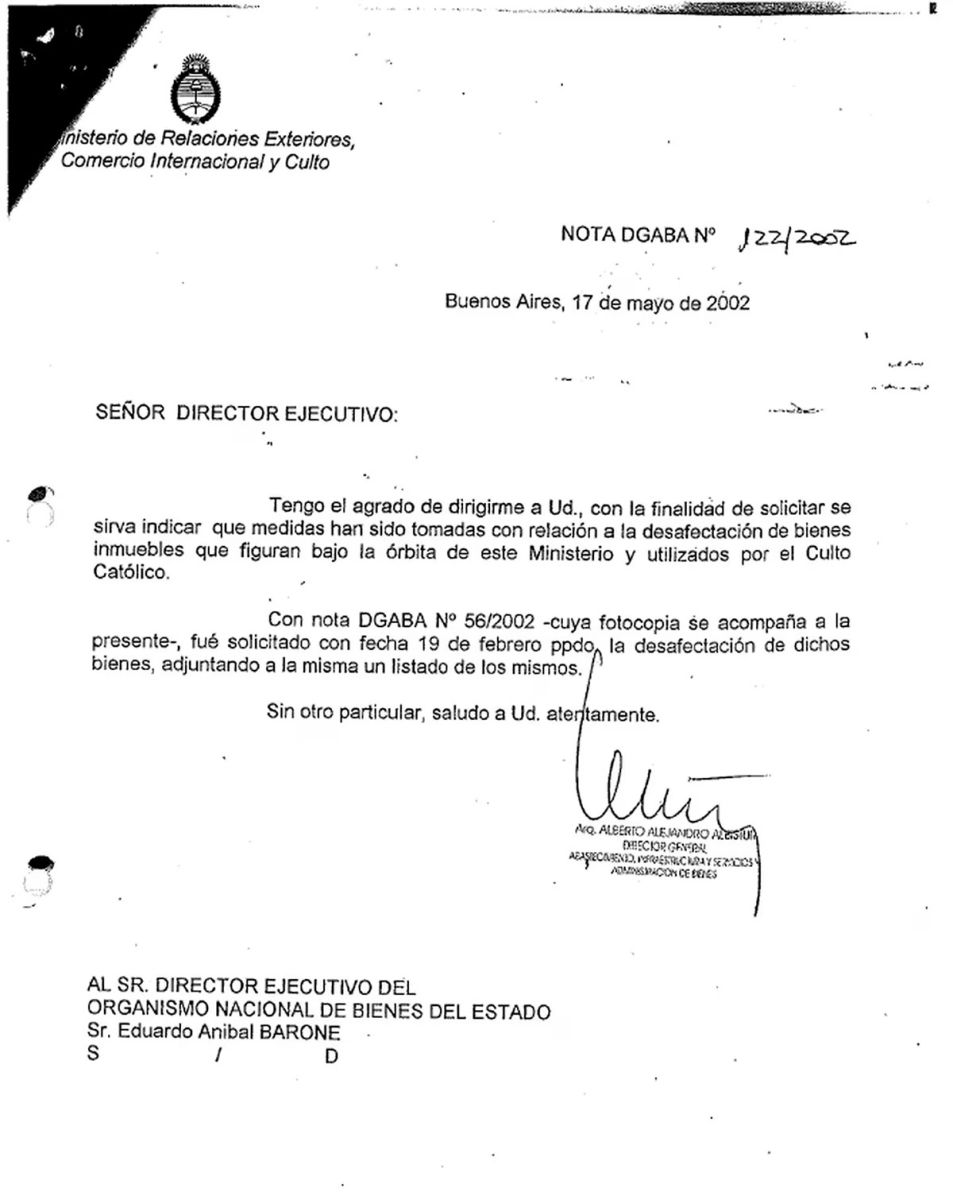 Se trata de edificaciones supuestamente utilizadas por organizaciones religiosas y que hace más de 20 años la AABE se las asignó a la Cancillería justamente por su condición de Ministerio de Relaciones Exteriores y Culto, pero desde entonces esa cartera dice no tener documentación alguna sobre los inmuebles y pide que se los desafecte.