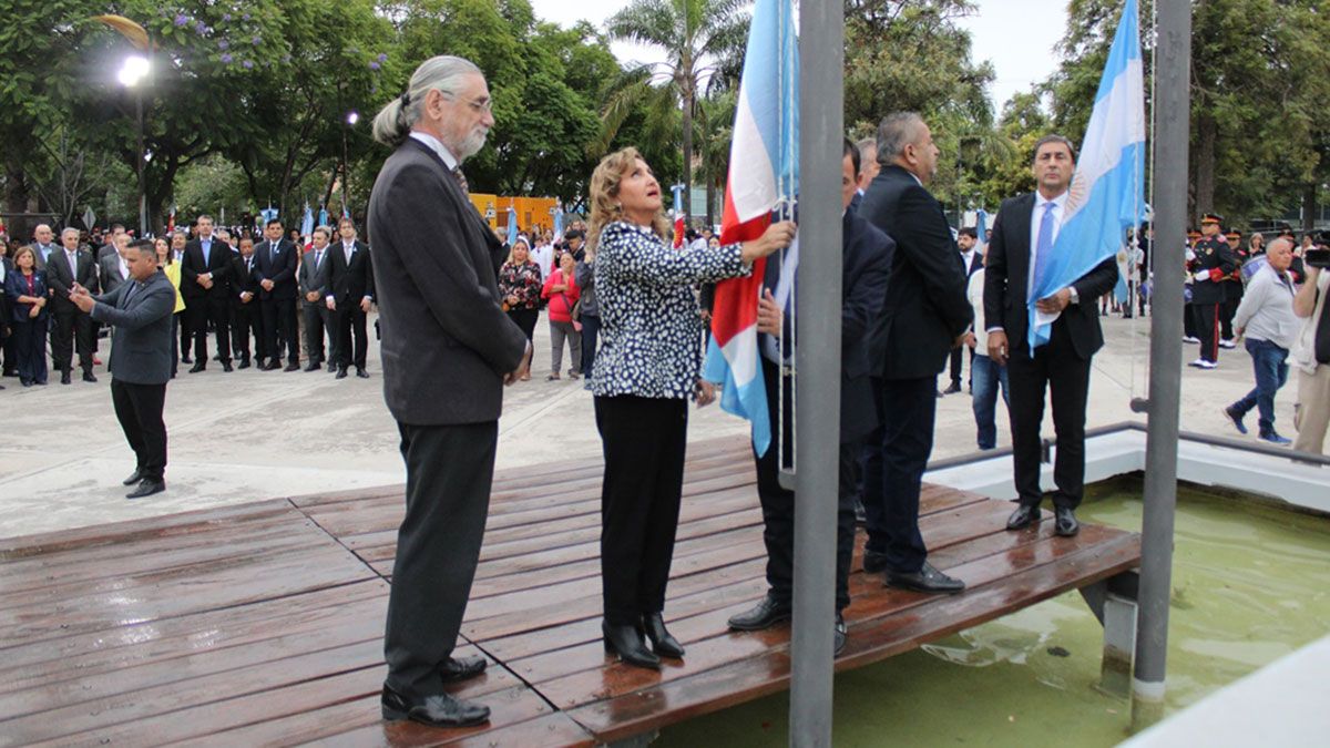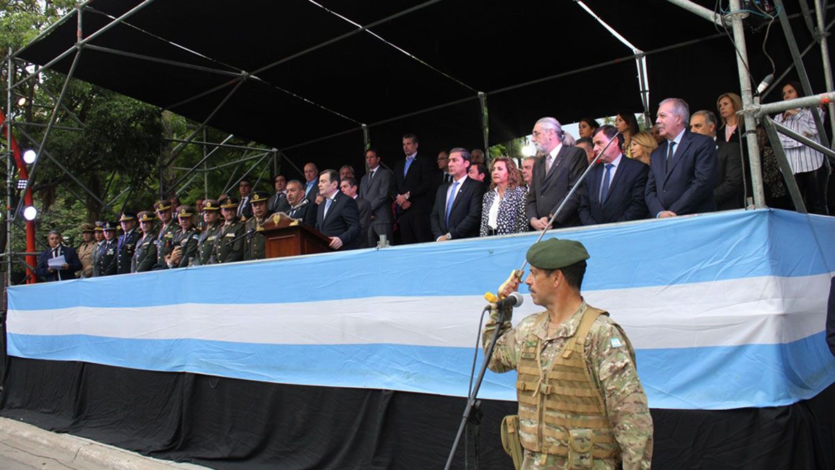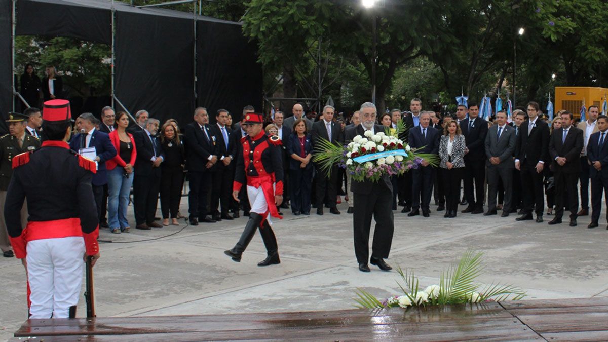 La ceremonia se inició con el izamiento de las banderas y la colocación de ofrendas florales. Más tarde, el titular del Poder Ejecutivo pasó revista de tropas, que estaban formadas sobre la calle Independencia.A continuación, se procedió a entonar las estrofas del Himno Nacional. Seguidamente, se pronunció una invocación religiosa y se realizó el tradicional toque de silencio en memoria de los fallecidos en combate.