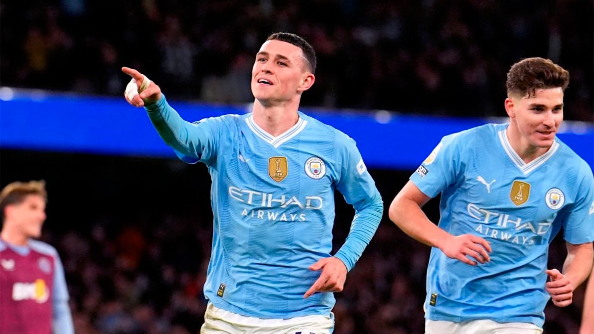 Manchester City se impuso 4-1 ante Aston Villa en el Etihad Stadium, por la 31° jornada de la Premier League. Para el elenco dirigido por Pep Guardiola, en el que Julián Álvarez fue titular, anotaron los goles Phil Foden por triplicado y Rodri. En cambio, para el de Unai Emery empató el duelo parcialmente Jhon Durán. Con el triunfo quedó, aunque con menor diferencia de gol, con los mismos puntos que Liverpool y con uno menos que Arsenal, que venció con autoridad a Luton Town por 2-0.