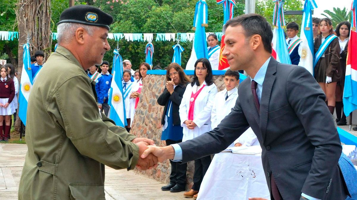 Mario Alberto Almirón, ex combatiente en las Islas Malvinas y fundador del Centro Malvinizador "Rodolfo de la Colina", brindó un discurso emotivo en el que recordó momentos de aquella cruenta guerra y por su parte la alumna Irupe Suárez del Colegio José Bravo de Rueda, recitó una poesía referida a los héroes.
