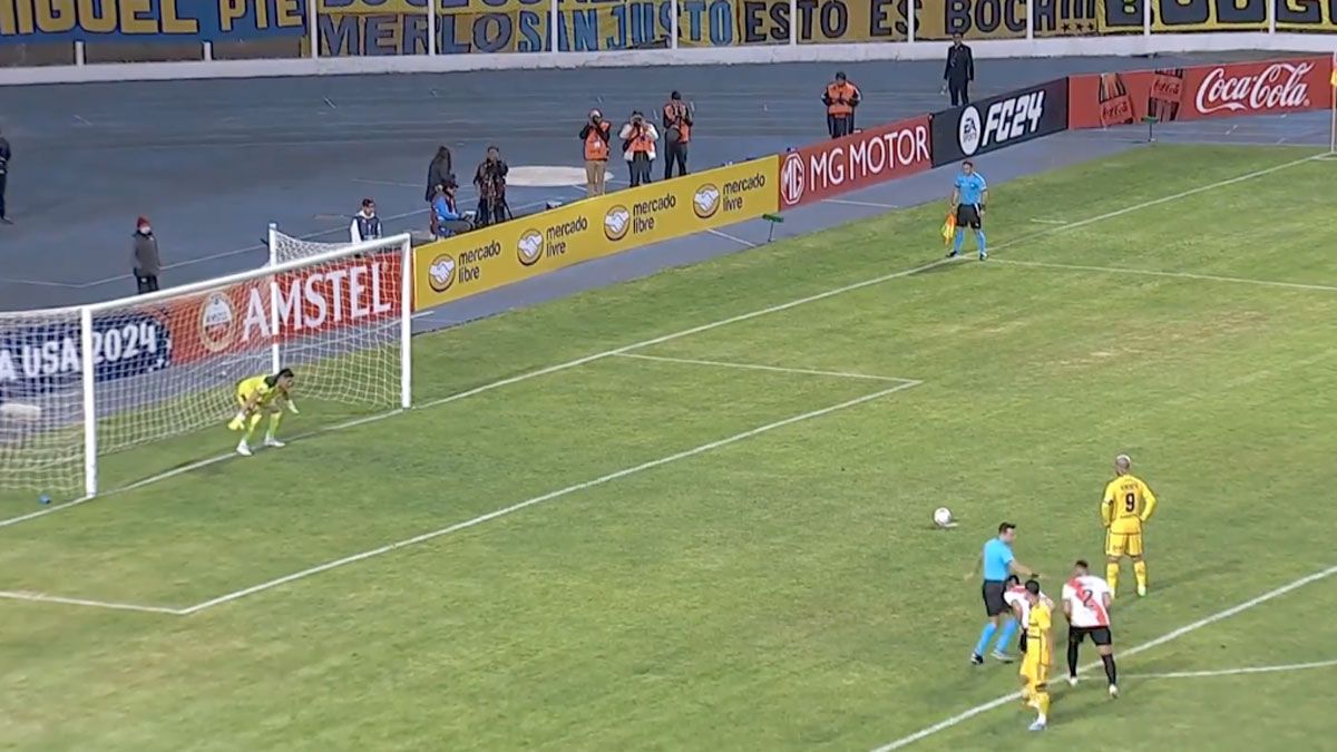Para la pena máxima, se hizo cargo el “Pipa” Benedetto, quien no quiso dejar dudas y remató con violencia al centro del arco, sin embargo, la pelota pegó en el travesaño y el rebote derivó en una contra para el elenco de Bolivia que no prosperó.