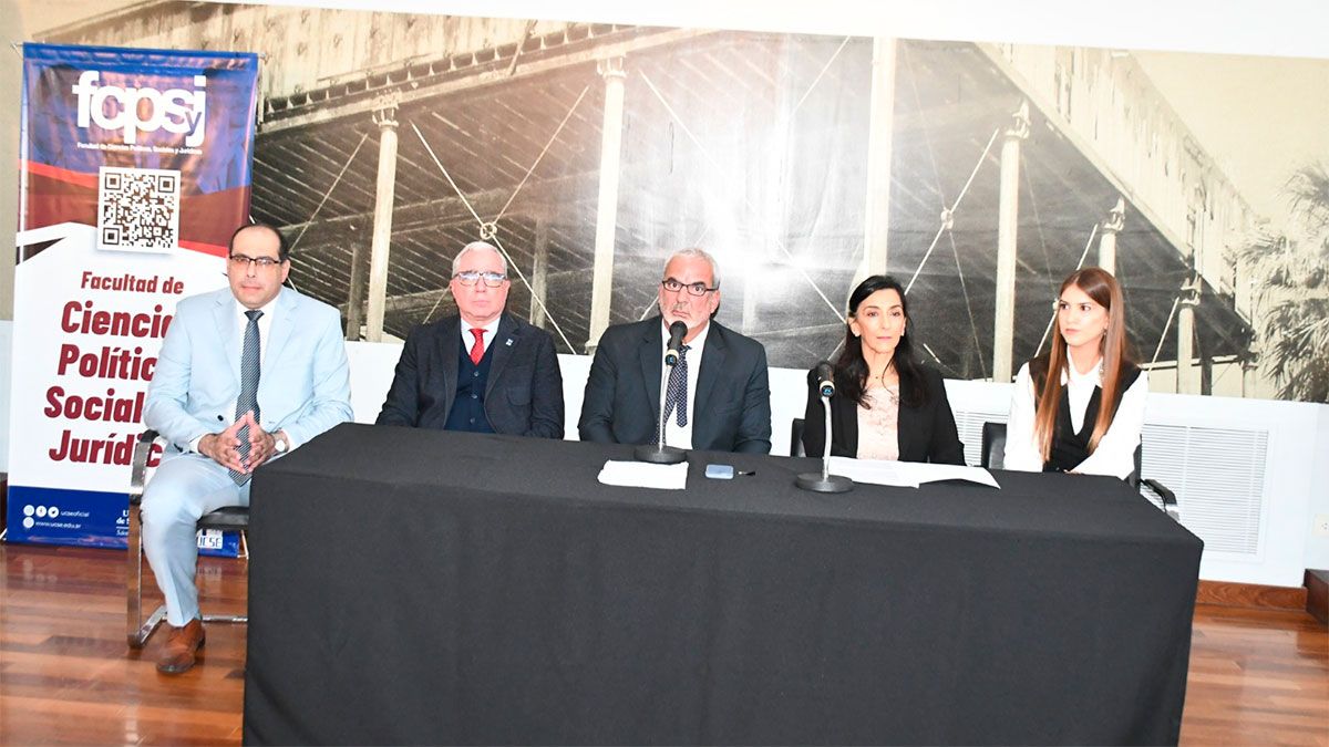 Acompañaron en la mesa panel la directora de Comercio, Luciana Montinho; el vicedecano de la Facultad de Ciencias Políticas Sociales y Jurídicas de la Ucse, Gabriel Ávila; el presidente del Colegio de Abogados, Luis Miguel, y la tiular de la Cátedra de Derecho del Usuario y Consumidor de la Ucse, Claudia Zemán.