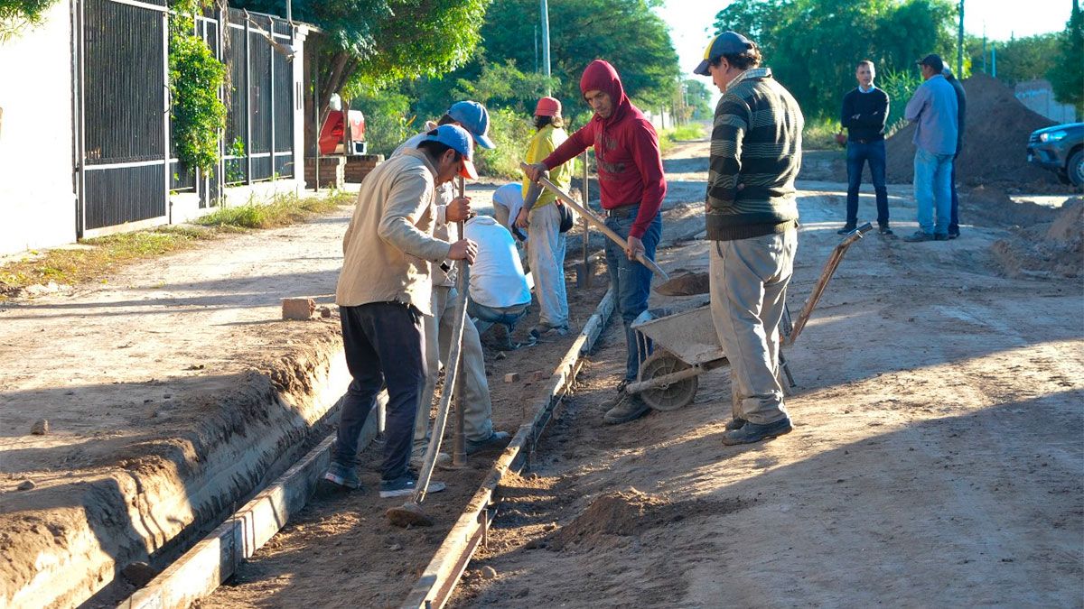 Una de esas obras, es la que se ejecuta actualmente en un tramo de la calle Roque Sáenz Peña en el Barrio Los Pinos, donde a través de la Secretaría de Obras públicas, el municipio construye cordón cuneta.