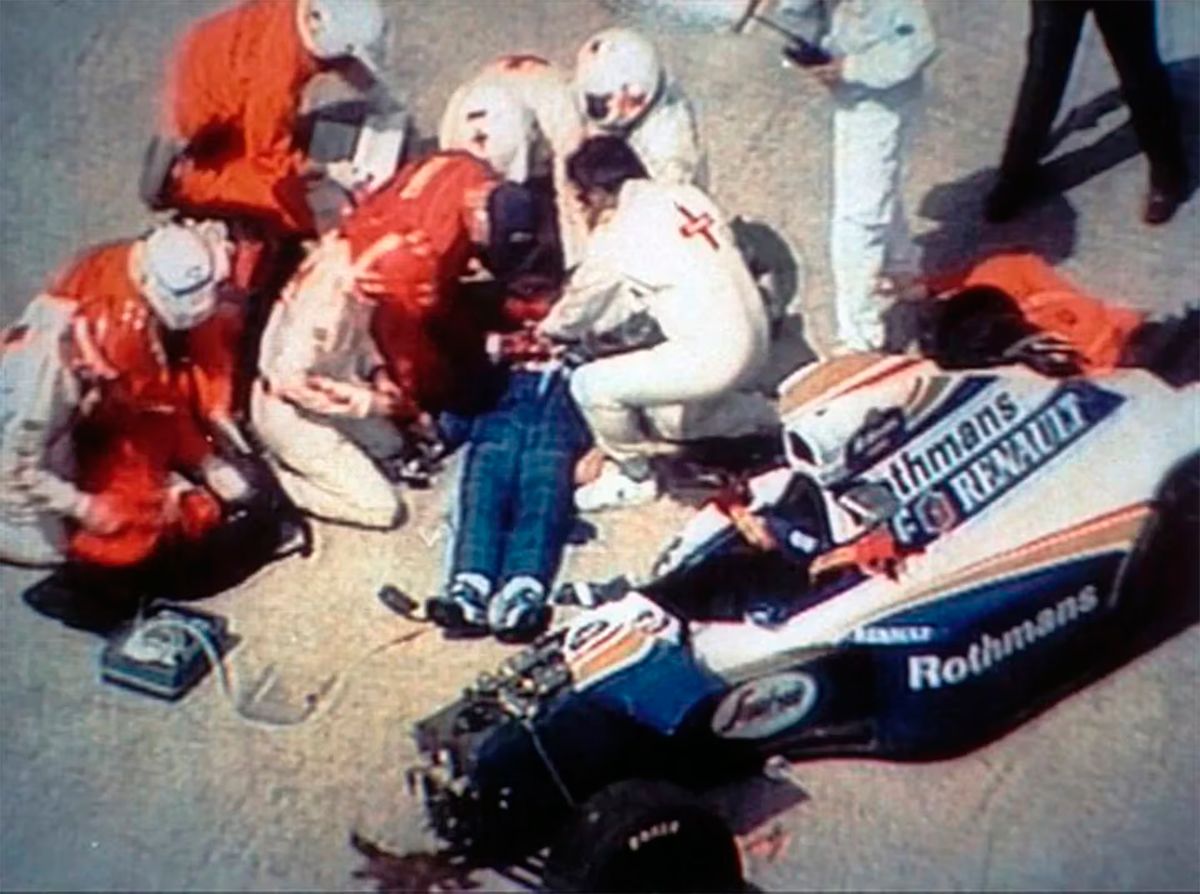 El personal médico acudió rápidamente al lugar y logró sacar a Ayrton Senna del monoplaza. Recién movió su cabeza a los 57 segundos, aunque no volvió a hacerlo, según se logra observar en las imágenes captadas por un helicóptero que sobrevolaba la zona.