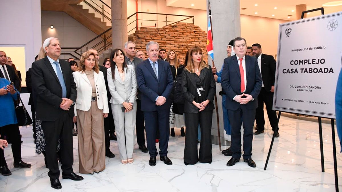 El gobernador Gerardo Zamora, acompañado por la senadora Claudia de Zamora, dejó inaugurado este viernes por la tarde el Complejo Casa Taboada, ubicado en calle Buenos Aires, entre 9 de Julio y Avellaneda, en pleno centro capitalino, donde funcionarán las oficinas de la Dirección General de Catastro (segundo y tercer piso) y el Registro de la Propiedad (tercero). En la planta baja, además de la recepción, se habilitará un circuito turístico como muestra de una parte del pasado de la ciudad.